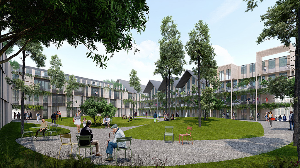 Rendering Grundschule und Gymnasium: ANTIPODES I Nattler Architekten