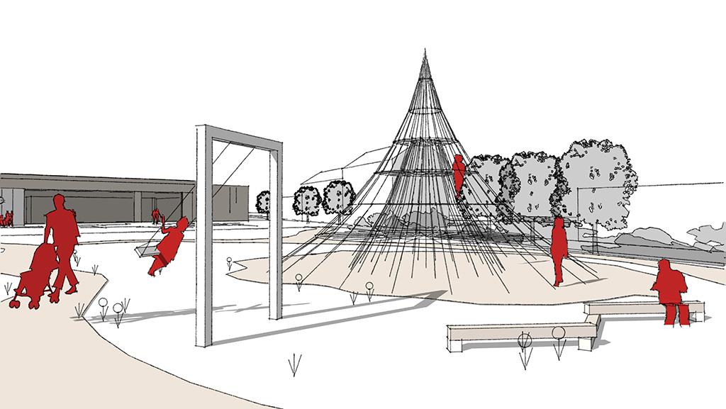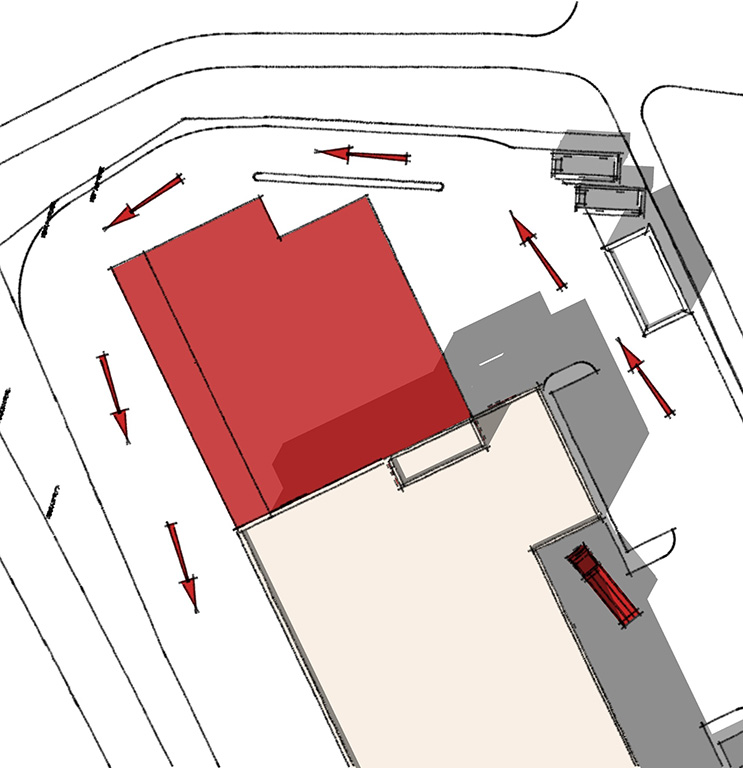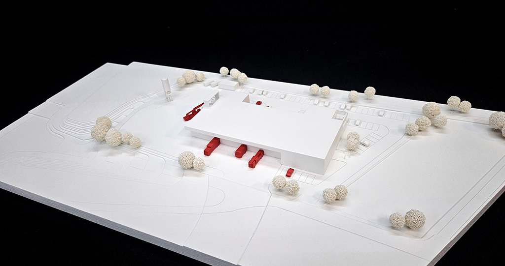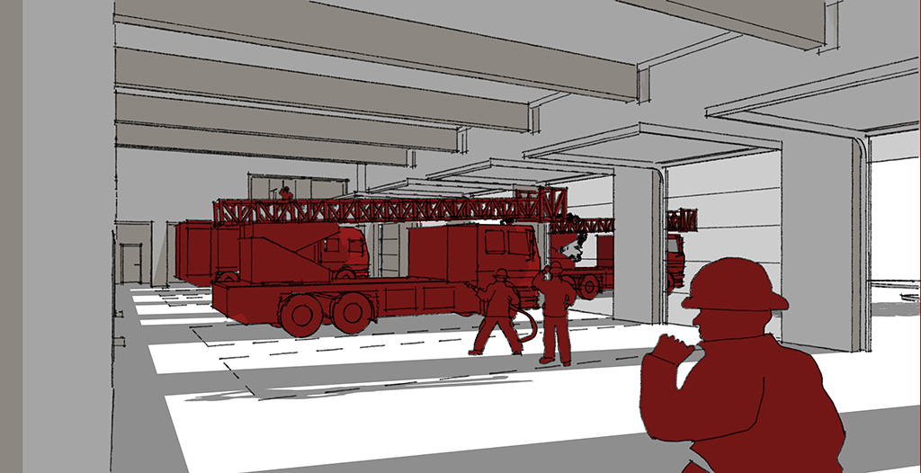Der Wettbewerbsentwurf für den Neubau der Freiwilligen Feuerwehr Weil am Rhein kombiniert Funktionalität, Nachhaltigkeit und städtebauliche Präzision. Der kompakte, zweigeschossige Baukörper mit Fassade aus vertikal orientierten Kalzip-Platten fügt sich harmonisch in das Umfeld ein und betont zugleich Eigenständigkeit. Ein Holzbinder-Tragwerk über der Fahrzeughalle unterstreicht den nachhaltigen Anspruch. Klare Wegeführungen ermöglichen effiziente Abläufe ohne Kreuzungsverkehr. Die Planung berücksichtigt eine spätere Erweiterung um sechs Stellplätze sowie Photovoltaik und energieeffiziente Haustechnik. Ergänzend schafft eine neue Festhalle mit Freizeitangeboten einen Übergang zwischen Feuerwehr und Landschaft. Der Entwurf überzeugt durch klare Struktur, Wirtschaftlichkeit und zukunftsorientierte Architektur.